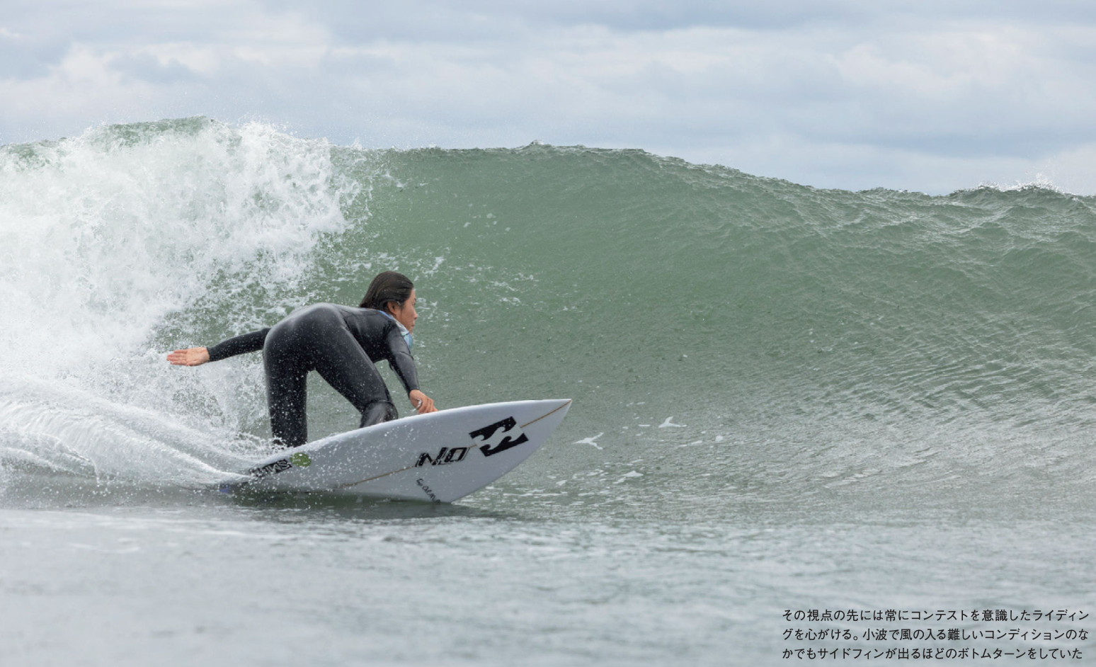 サーフィンのメッカ、千葉県のなかでも人気サーフスポットが点在する一宮町東浪見の程近くにあるON SURFBOARDSの工場では仕事前のサーフセッションを終えた後、黙々と仕事に取り組む川瀬と逢野の姿があった。ひと仕事を終えたら午後はまた練習に励むという川瀬。テストボードが仕上がれば、すぐに海でテストを行う。逢野は時に一緒に海に入り、時に岸からカメラで川瀬のライディングを撮影し、動きとフォームを客観的に確認する。午前のセッションで得た映像を昼に見返し、午後にはその課題を持って再び海に入る。そんなやり取りが続いている。川瀬にとって逢野との出会いはJR SURFBOARDS に乗っていた3年ほど前、日本で輸入総代理店をしていた逢野にジャパンメイドのサーフボードを削ってもらったことがキッカケだった。「その1本がすごい調子がよかったから、そのまま1年ライダーとして乗せてもらって、そのあとONのボードに乗ることになった感じです」と川瀬。ここ最近はライダーとシェイパー、選手とコーチ的な関係でもあり、逢野との時間はサーフィンの意識を変える機会にもなった。かつては「サーフィンが好きで、ただ好きなように乗る」という練習内容だった。そんななか逢野が「コンテストのサーフィンはジャッジに評価されないといけない」と伝え、それを課題にしているという。川瀬と逢野の二人三脚でコンテストにおいて高い評価を得るために、何が必要かを具体的に考えるようになった。波のサイズ、ラインの描き方、スピードの繋ぎ方など共に映像を分析するうちに、勝つためのサーフィンへの理解が深まっていった。彼女の練習スタイルは明確に変わってきている。