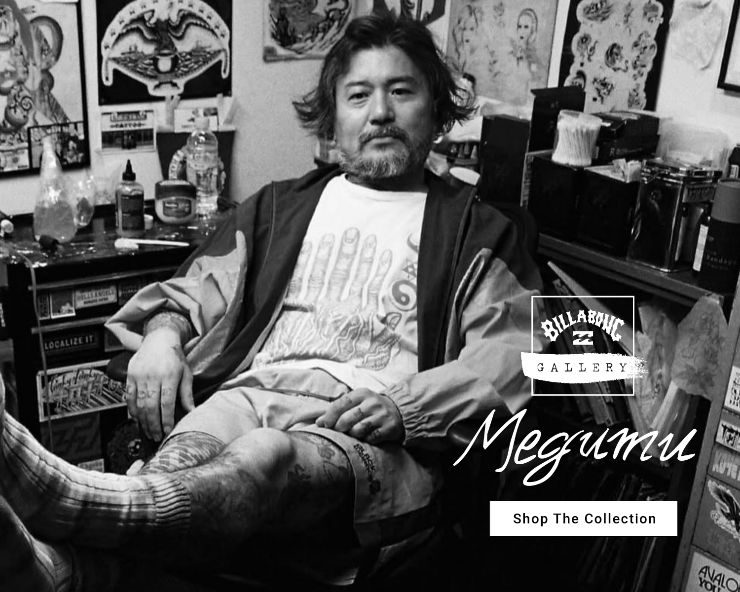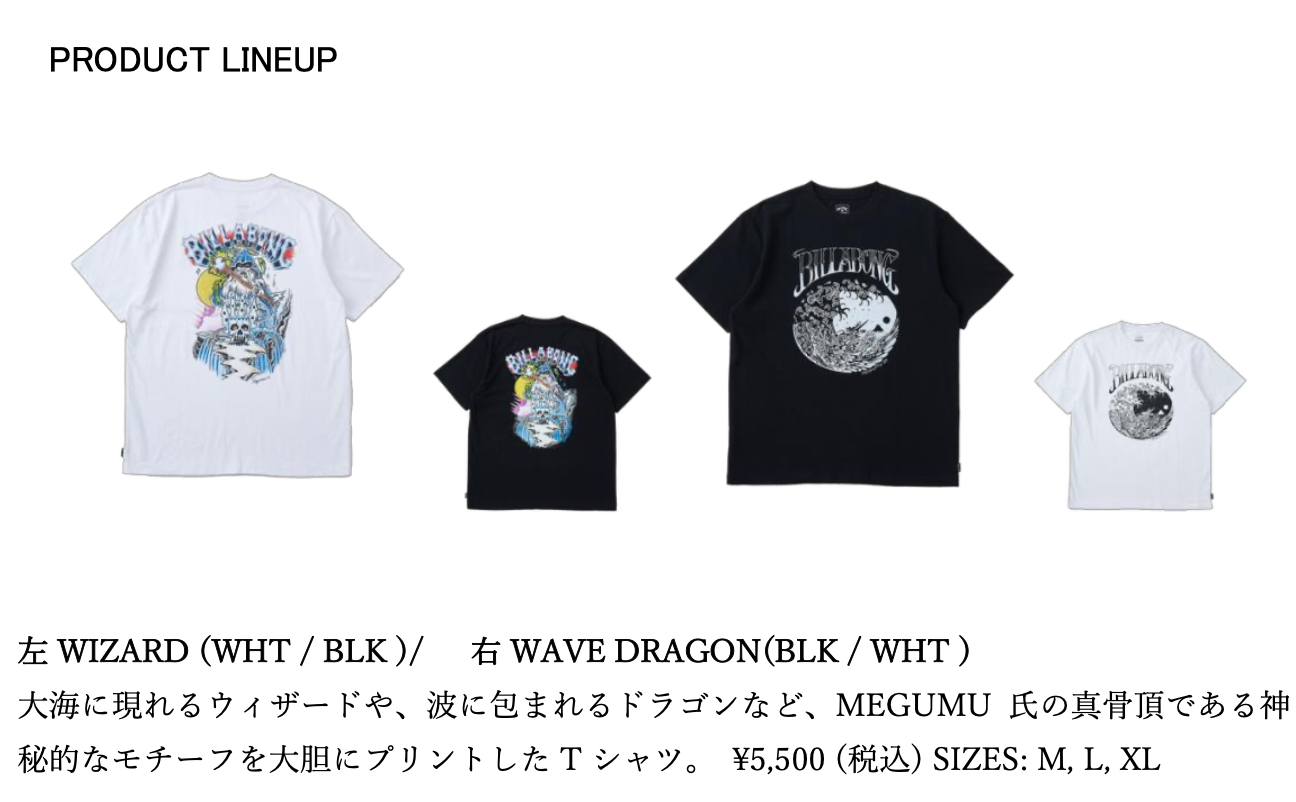 2026SPRING BILLABONG MENS ラインからは、アーティスト Megumu Kamata。そして今回のテーマは、タトゥーカルチャーが持つ「伝統的なライン」と、サーフィンが象徴する「波の流動性」の融合。 MEGUMU 氏が得意とする有機的な曲線は、自然界に存在するエネルギーと、個人の内なるアイデンティティを鮮やかに表現している。