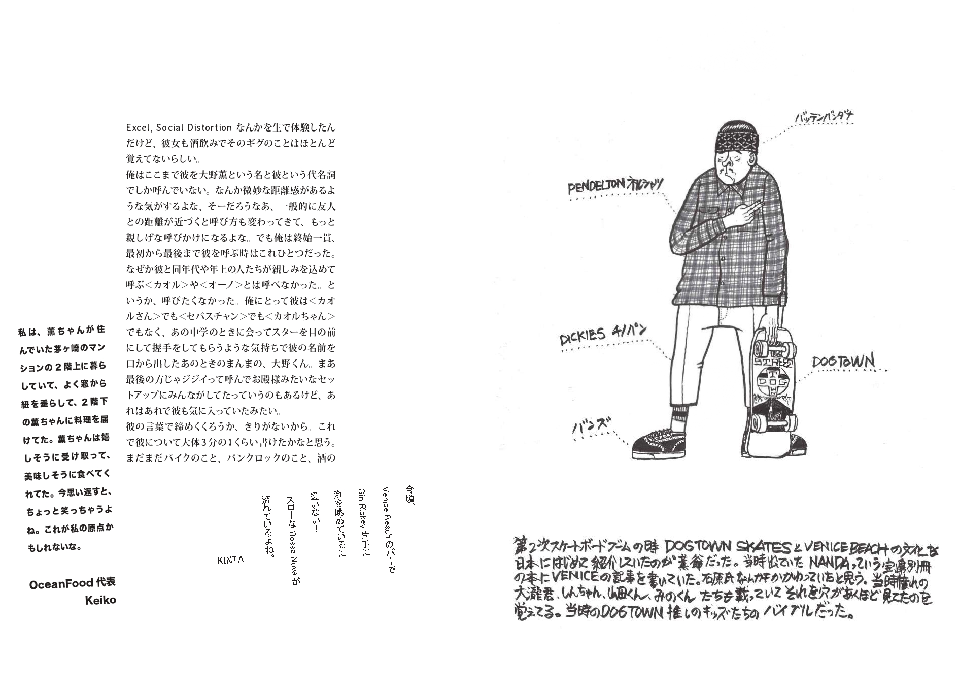 ⽇本のサーフカルチャーの黎明期を駆け抜け、湘南・鵠沼と東京・⽬⽩に伝説のサーフショップ「Pineapple Bettyʼs」をオープンした⼤野薫。カリフォルニアのカルチャーをいち早く取り⼊れ、⻄海岸的ライフスタイルの礎を築いた。1999 年に 48 歳でこの世を去った彼は、プロサーファーでありながら⽂筆家としても活躍。若い世代や横乗りカルチャーに多⼤な影響を与え続けてきた。