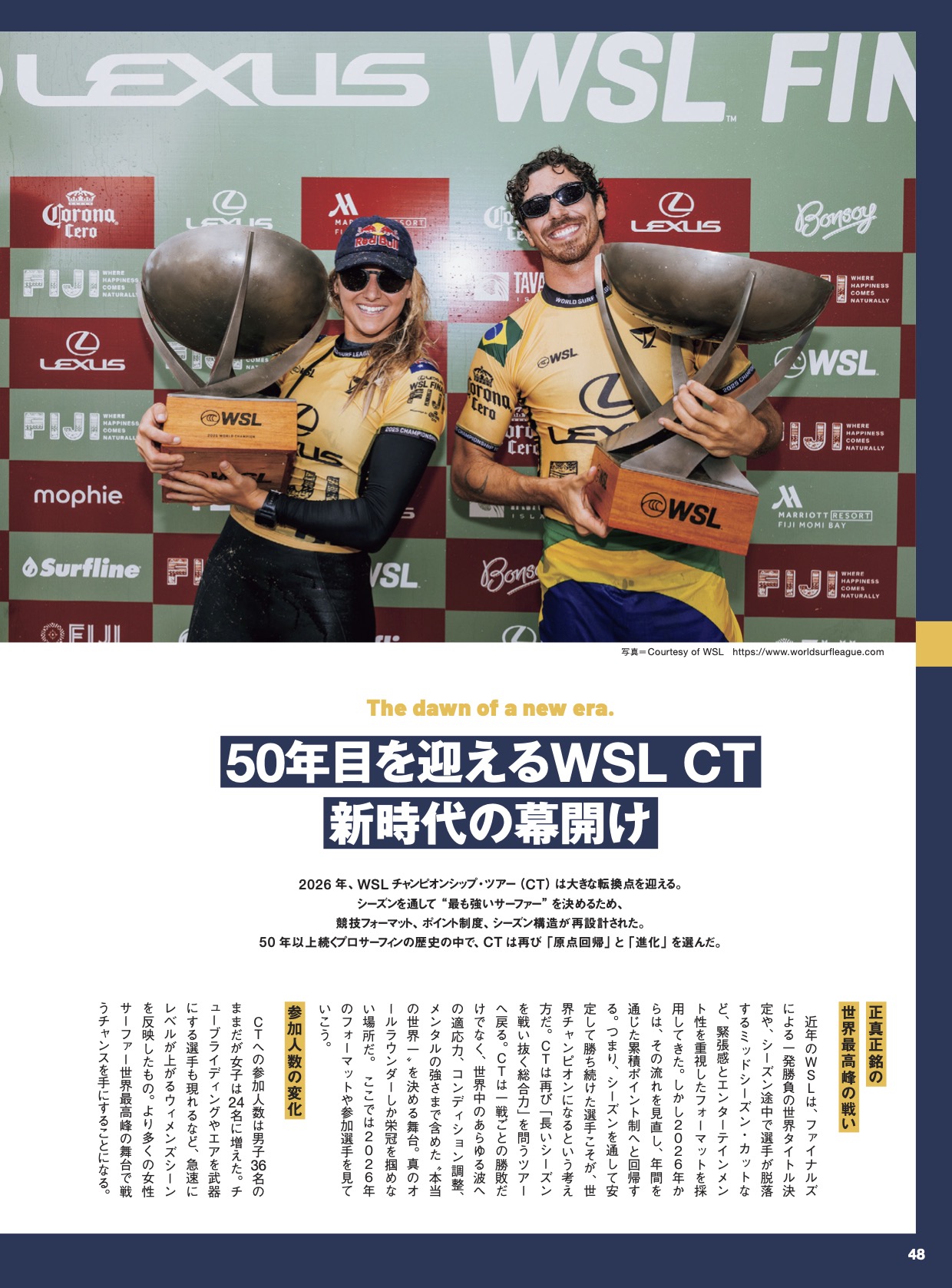 2026 年、WSL チャンピオンシップ・ツアー(CT)は大きな転換点を迎える。シーズンを通して“最も強いサーファー”を決めるため、競技フォーマット、ポイント制度、シーズン構造が再設計された。50 年以上続くプロサーフィンの歴史の中で、CT は再び「原点回帰」と「進化」を選んだ。